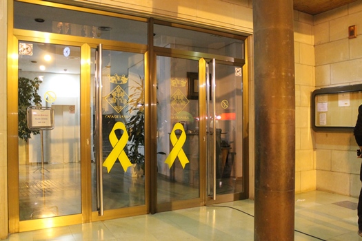 Des d’aquest divendres dos llaços grocs han estat col·locats a la porta principal de l’Ajuntament de Flix, un símbol força generalitzat que ha esdevingut l’expressió de solidaritat amb els presos polítics.