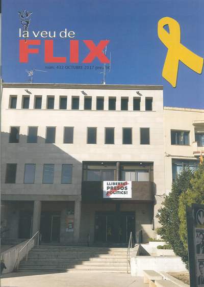 Ja ha estat publicat el núm. 432 de la revista d’informació local La Veu de Flix, que correpon al mes d’octubre de 2017. La portada la protagonitza una fotografia de la façana de l’Ajuntament de Flix, realitzada per Núria Fauquer, on es pot visualitzar la pancarta del balcó, “Llibertat presos polítics”. Sobreimprès a la part superior hi ha un llaç groc.