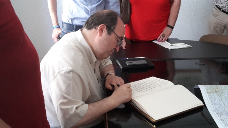 Posteriorment, a Flix, primer va atendre els mitjans de comunicació. Seguidament, a la Sala de Comissions de l’Ajuntament, fou informat pel regidor Xavier Sabaté d’altres detalls de les afectacions de l’incendi i seguidament, Miquel Iceta signà al Llibre d’Honor de l’Ajuntament de Flix.