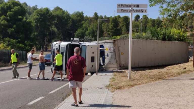 Imatge del camió accidentat (Fotografia: Ebredigital.cat)