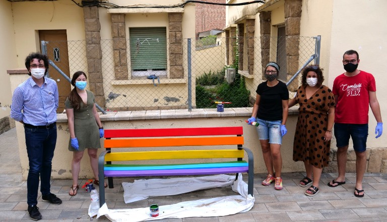 Una vegada més, l’Ajuntament de Flix s’ha adherit a la commemoració del Dia Internacional de l’Orgull LGTBI. Al marge de la col·locació de la bandera de l’arc de Sant Martí a la balconada de l’Ajuntament, aquest any també s’ha fet palès aquest suport pintant un dels bancs de la plaça del 8 de Març tanmateix amb els colors de l’arc, símbol de la reivindicació dels drets d’aquest col·lectiu.