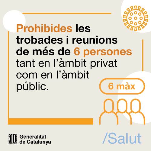 - Agrupacions d’un màxim de 6 persones (a partir de demà dissabte 26 de setembre)