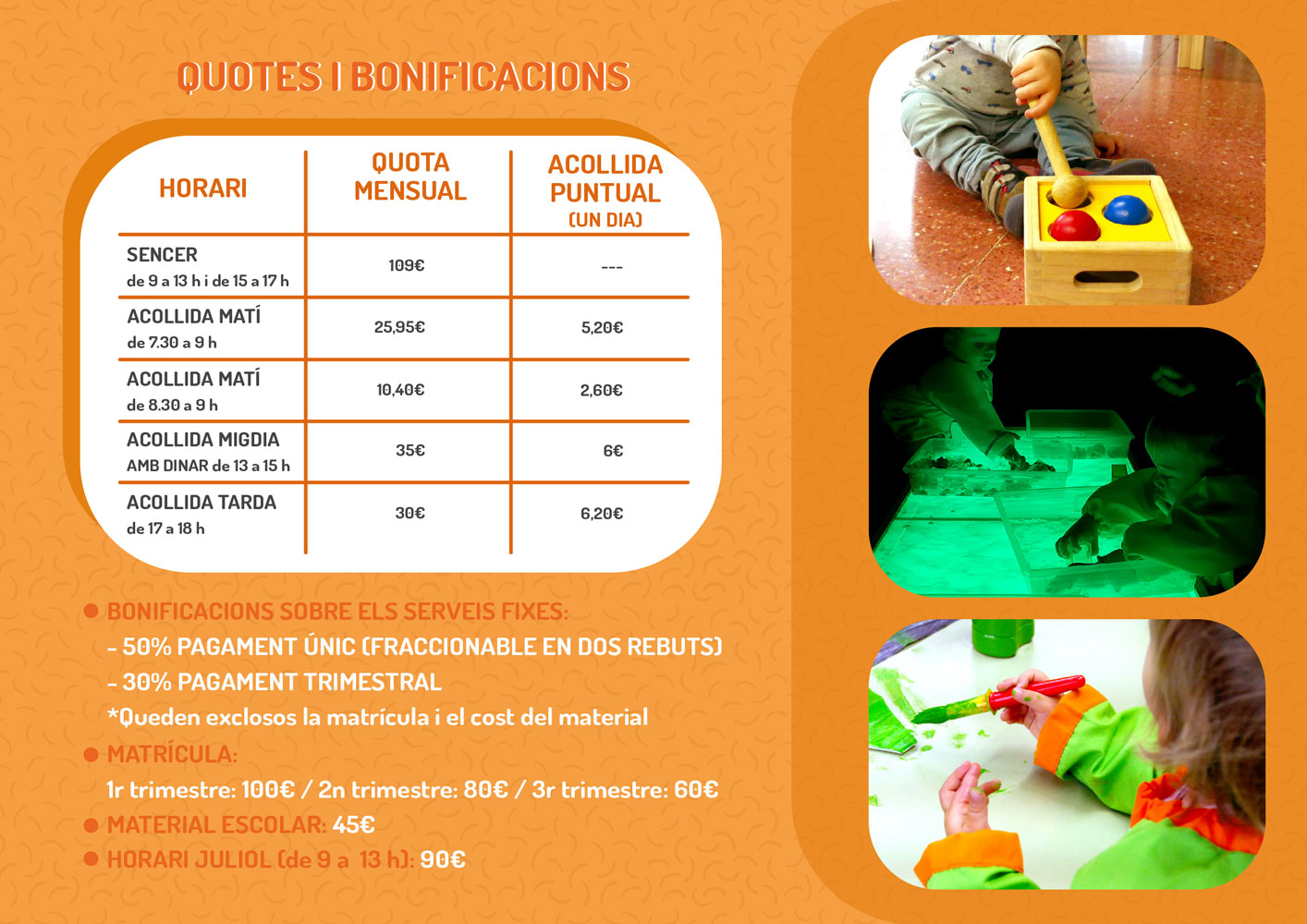 Al llarg d’aquest temps, l’escola s’ha refermat en la idea de ser un centre educatiu vital en el desenvolupament integral de l‘infant. Lluny queda la idea de guarderia com a lloc on es guarden els nens i les nenes. És per tot això que des de fa uns anys aposta per una canvi en el seu projecte educatiu donant importància a l’experiència de l’infant, als sentits, al viure l’aprenentatge en primera persona i a gaudir-lo plenament, seguint sempre els continguts marcats pel currículum del primer cicle d’educació infantil (Generalitat de Catalunya). L’Escola atén nens i nenes dels quatre mesos als tres anys d’edat.