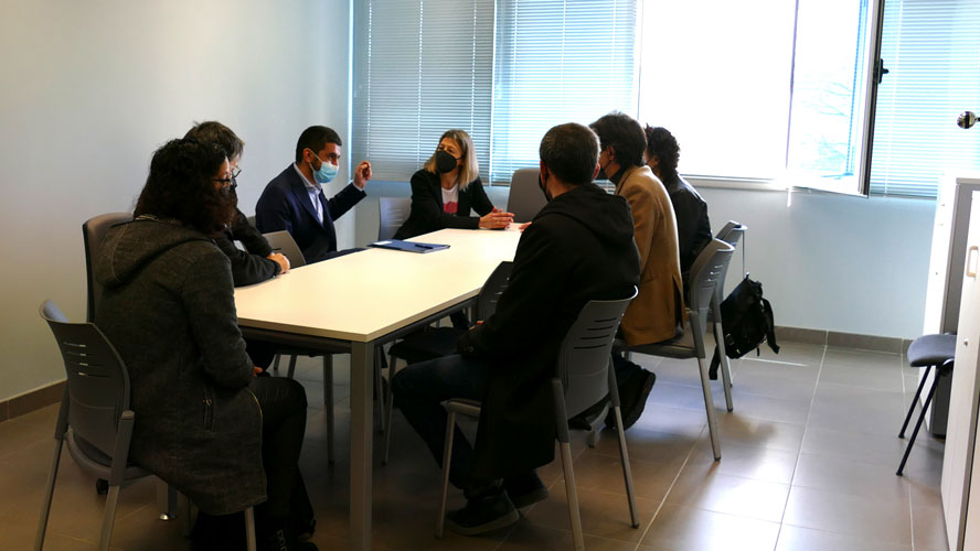 Reunió entre el Conseller, els representants del consistori, la coordinadora dels cursos del centre, Marta Serrano, la directora del SOC, Ariadna Rectoret, i el director dels Serveis Territorials de Treball, Afers Socials i Famílies a les Terres de l’Ebre, Màrius Pont