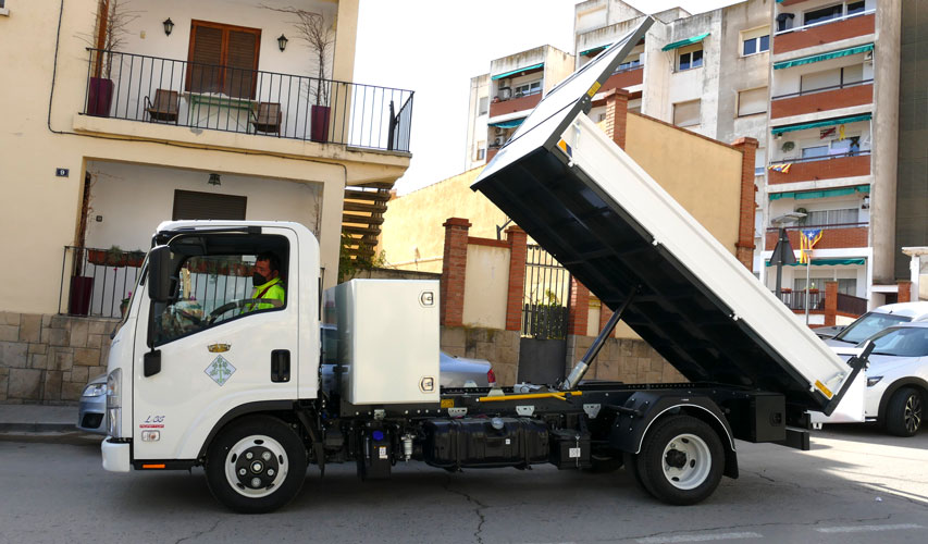 Vehicle de tres places amb bolquet hidràulic marca Isuzu