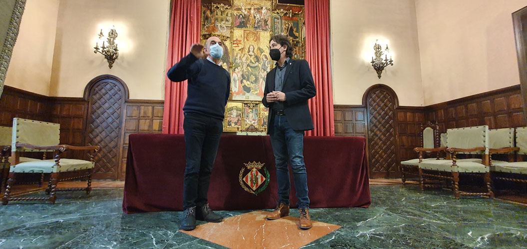 Després de la reunió de treball, el batlle de Flix ha pogut conèixer el Saló de Plens i el Saló del Retaule, de la mà del paer en cap.