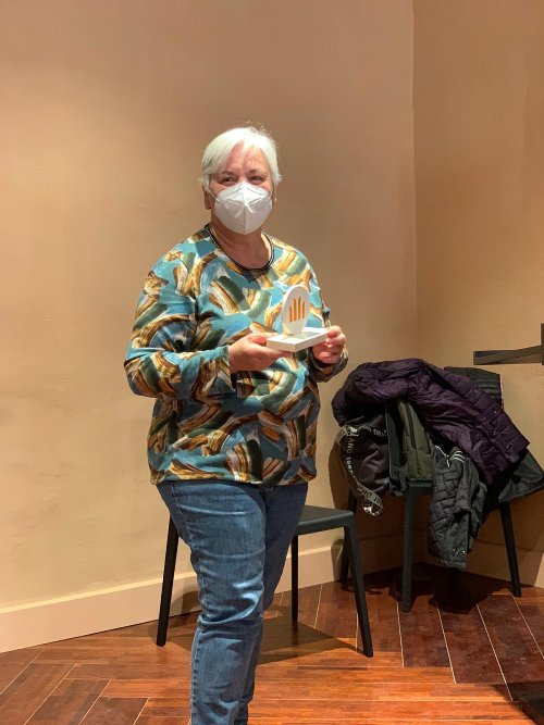 Parlament de Dora Cervelló Ceró després de rebre el guardó. A l’esquerra, Dolors Roo Garcia, presidenta territorial dÒmnium Cultural de les Terres de l’Ebre.