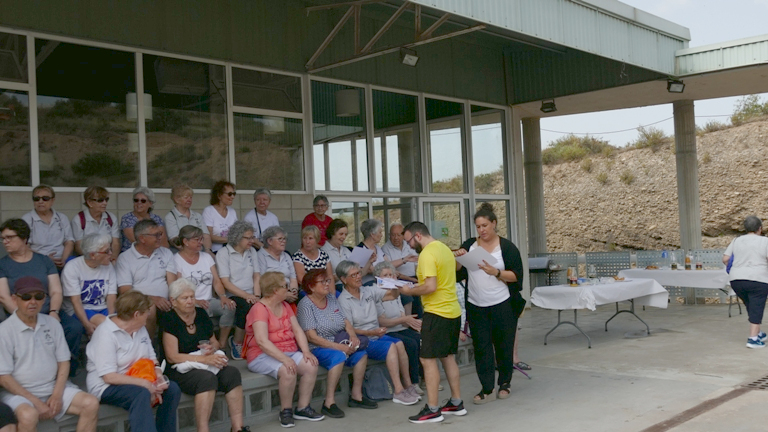 Instant del parlament de al regidora d’Afers Socials, Norma Pujol; a l’esquerra, el regidor d’Esports, Caco Casals; al centre, el monitor d’Esports, Joan Esteban.