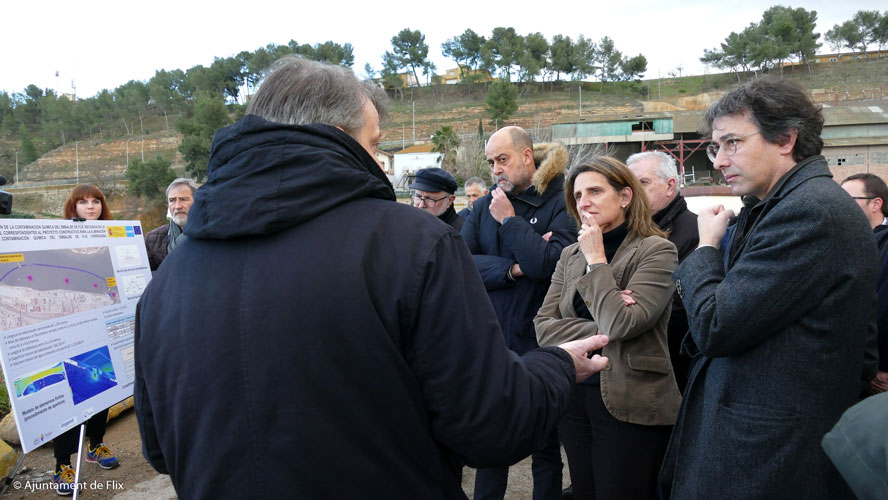 La ministra per a la Transició Ecològica, Teresa Ribera, ha visitat el pantà de Flix on dilluns començaran les obres per desmuntar les planxes de confinament de la zona descontaminada. Es culmina així un procés que s’ha allargat prop de dues dècades, “l’obra de restauració ambiental més important de Catalunya, per la singularitat i per inversió”, com ha recordat l’alcalde Francesc Barbero. Ribera ha destacat que “és un dia enormement alegre i satisfactori”. Com ha detallat Mario Araus, gerent d’explotació d’Acuamed, els pròxims mesos s’aniran retirant les palplanxes molt a poc a poc. Es farà una petita obertura per on fer circular l’aigua dins la zona confinada mentre la CHE, l’ACA i Acuamed faran controls constants d’afectacions a l’Ebre.