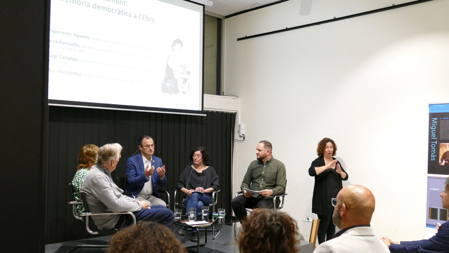 La jornada ha comptat amb una ponència marc de la professora de Dret Internacional Públic de la Universitat de Barcelona, Sra. Rosa Ana Alija Fernández. Posteriorment, s’ha fet una taula de debat sobre la memòria democràtica a l’Ebre, amb la participació del director general de Memòria Democràtica, Alfons Aragoneses Aguado, la periodista i professora de la Universitat Autònoma de Barcelona, Teresa Farré Panisello, i els professors d’Història Pere Muñoz Hernández i Carme Maigí Canalda.
