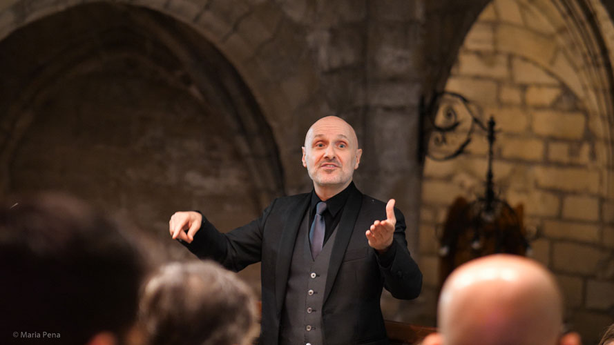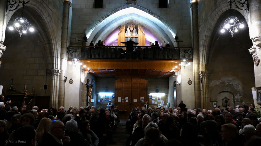 Josep Vila i Casañas dirigint el concert commemoratiu a l’Església de Flix. Fotografia: Maria Pena