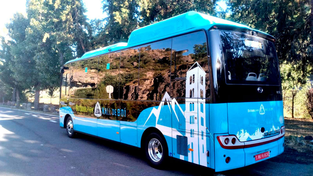 Minibús elèctric del mateix model que s’està fabricant per al municipi, ja en funcionament a la Vall de Boí