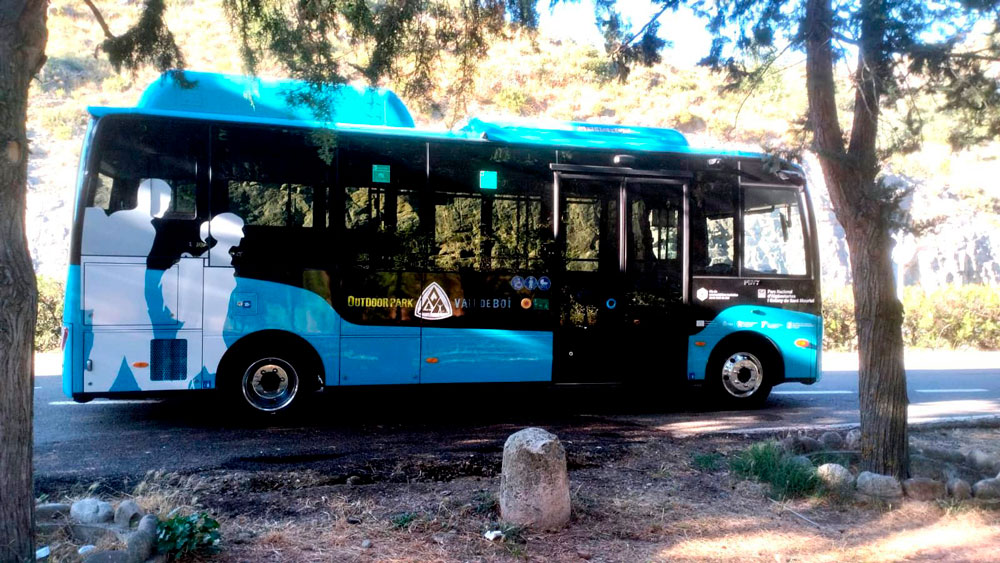 Minibús elèctric del mateix model que s’està fabricant per al municipi, ja en funcionament a la Vall de Boí
