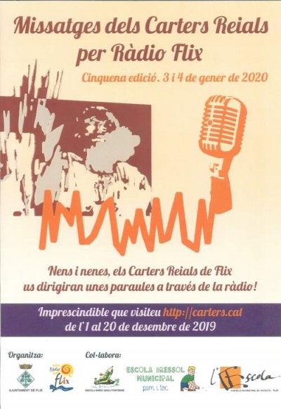 Ajuntament de Flix Els Carters Reials arribaran a Flix el proper 2 de gener. I com han fet durant els quatre darrers anys, allargaran la seua estada a la nostra població els dies següents 3 i 4 de gener per participar en un programa especial a Ràdio Flix, des del qual faran arribar missatges personalitzats [...]