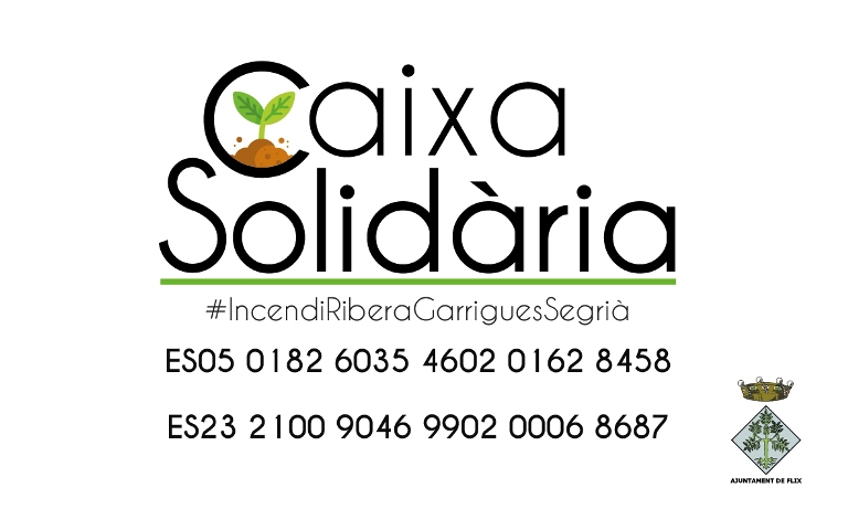 Ajuntament de Flix Davant les nombroses iniciatives que estan duent a terme les entitats per recaptar fons per fer front a les afectacions de l'incendi, sota el lema Caixa Solidària l'Ajuntament de Flix ha obert dos comptes corrents en entitats bancàries de la població perquè es puguin ingressar aquests diners recaptats i tanmateix per a [...]