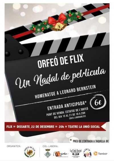 Ajuntament de Flix Aquest dissabte 22 de desembre, a les 8 de la tarda i al saló de cinema de La Unió Social, l'Orfeó de Flix oferirà el seu Concert de Nadal. Sota el títol "Un Nadal de pel·lícula", el concert serà un homenatge al compositor Leonard Bernstein, de qui enguany se celebra el centenari [...]
