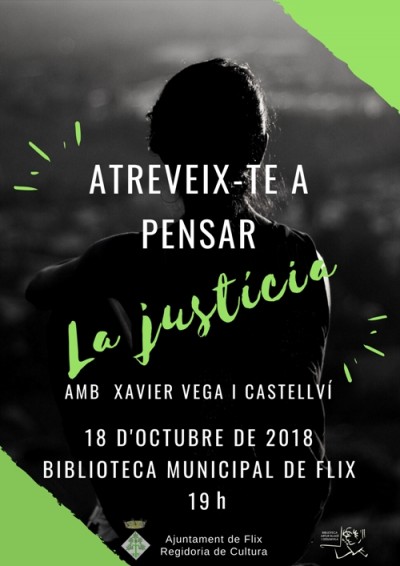 Ajuntament de Flix Avui dijous 18 d'octubre, a les 7 de la tarda i a la Biblioteca Municipal "Artur Bladé i Desumvila", s'impartirà la xerrada "La Justícia", a càrrec de Francesc Xavier Vega Castellví. Amb aquesta xerrada es reprèn el cicle mensual "Atreveix-te a pensar", amb el qual Xavier Vega explica la vinculació de la [...]