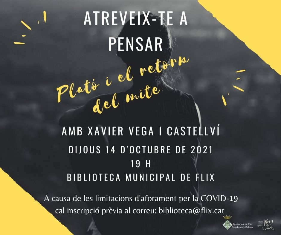 ATREVEIX-TE A PENSAR – Xerrada “Plató i el retorn del mite”, a càrrec de Francesc Xavier Vega Castellví
