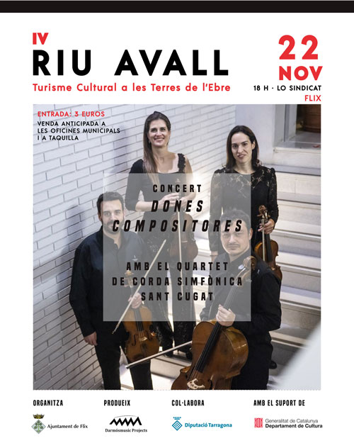 El Quartet de corda de la Simfònica de Sant Cugat oferirà un programa dedicat a les dones compositores, en el marc del Festival Riu Avall.