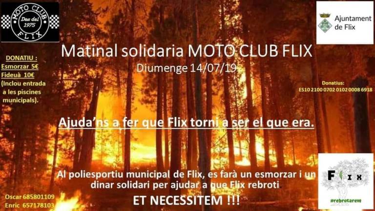 Els tiquets es poden adquirir a les oficines municipals, a la Perruqueria Miralles i a la seu del Moto Club Flix (a partir de les 18.00 h en aquest darrer cas).