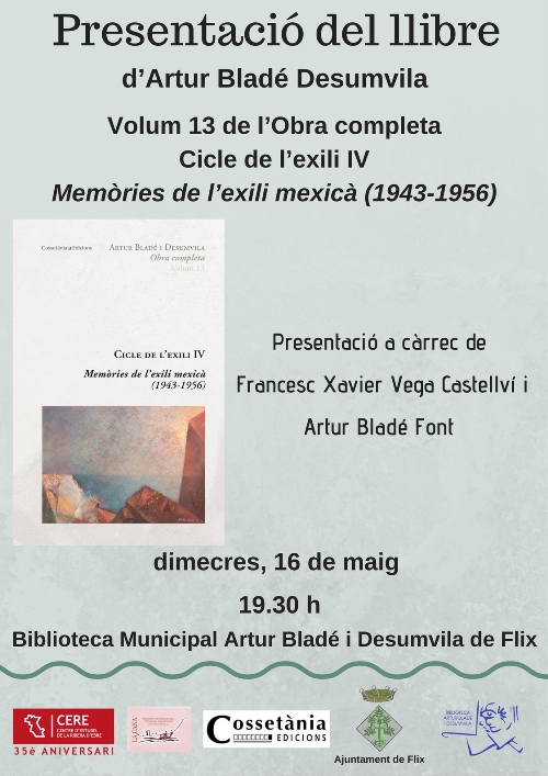 Es comptarà amb la presència del fill de l’escriptor, Artur Bladé Font