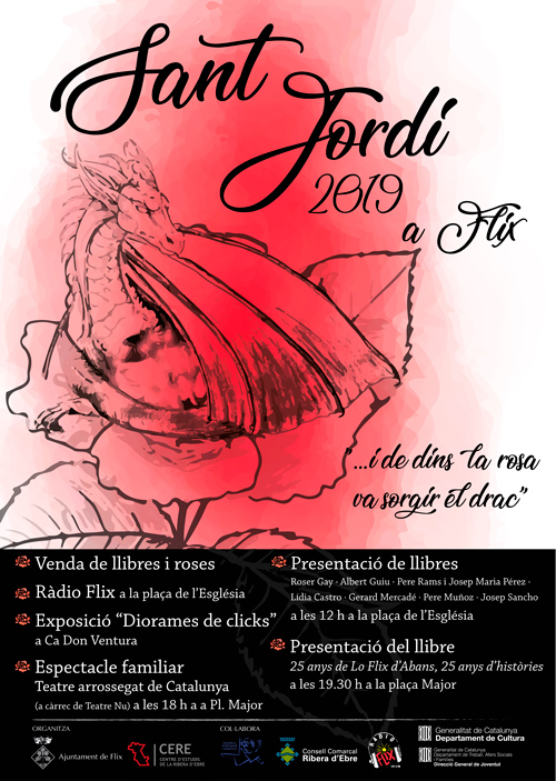 • Venda de llibres i roses a la plaça de l’Església i altres carrers; Ràdio Flix emetrà en directe des de la mateixa plaça