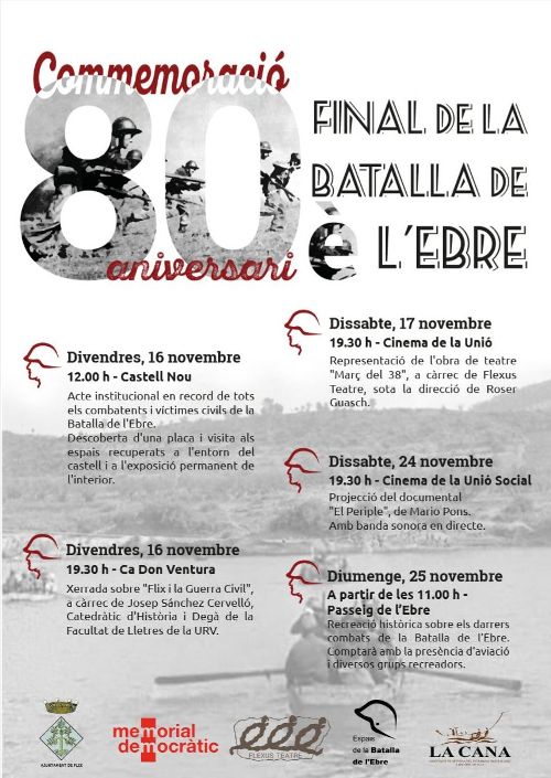 Programa d'activitats de la commemoració del 80è Aniversari de la Batalla de l'Ebre (pdf) Programa d’activitats de les X Jornades de Patrimoni Històric – XI Curs Coneguem la Ribera d’Ebre (pdf)