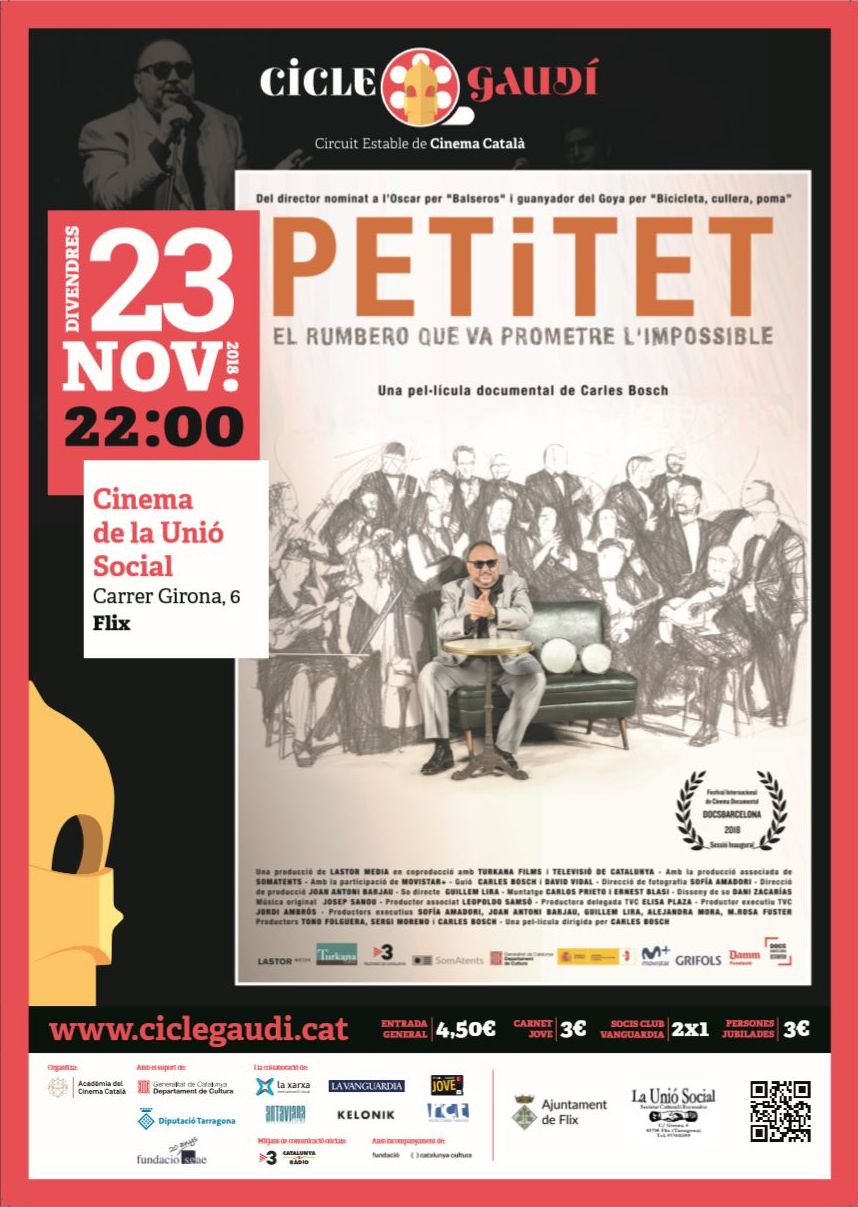 El Cicle Gaudí és un circuit estable de cinema que porta pel·lícules de producció local als cinemes del territori Preu entrada: General: 4,5 euros Jubilats i joves (amb Carnet Jove): 3 euros