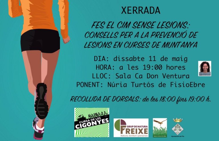 Activitat prèvia a la 6a Cursa i Caminada de les Cigonyes Abans de la xerrada, entre les 18.00 i les 19.00 h, les persones inscrites a les proves de la 6a Cursa i Caminada de les Cigonyes podran recollir els dorsals i la bossa del corredor.