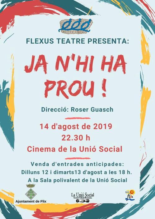 Direcció: Roser Guasch Venda anticipada d'entrades dilluns 12 i dimarts 13 d'agost a les 18.00 h, a la sala polivalent de La Unió Social.