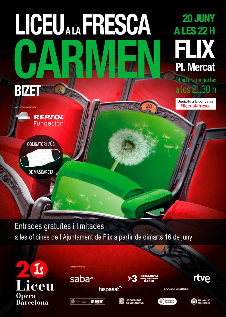 Obertura de portes a les 21.30h Entrades gratuïtes i limitades. Es poden passar a recollir a les oficines municipals a partir de dimarts 16 de juny. Serà obligatori l'ús de mascareta.
