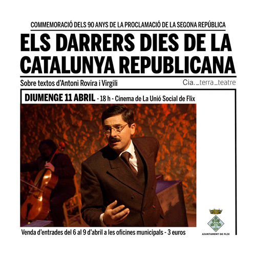 Aquest any es commemora el 90è aniversari de la proclamació de la Segona República. Entre els actes commemoratius tindrà lloc l'obra de teatre "Els darrers dies de la Catalunya Republicana" a càrrec de la companyia Terra Teatre, que narra uns dies viscuts per l'escriptor i polític Antoni Rovira i Virgili quan entra en fase culminant […]