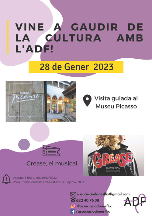 Visita guiada al Museu Picasso Grease, el musical Inscripcions fins al dia 26 de desembre de 2022 Preu condicionat a l'assistència: aproximadament 90 euros