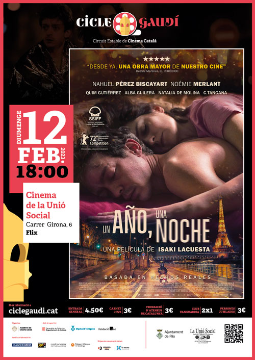 El Cicle Gaudí és un circuit estable de cinema que porta pel·lícules de producció local als cinemes del territori. Preu entrada: General: 4,5 euros Jubilats i joves (amb Carnet Jove): 3 euros Més informació: Un año, una noche