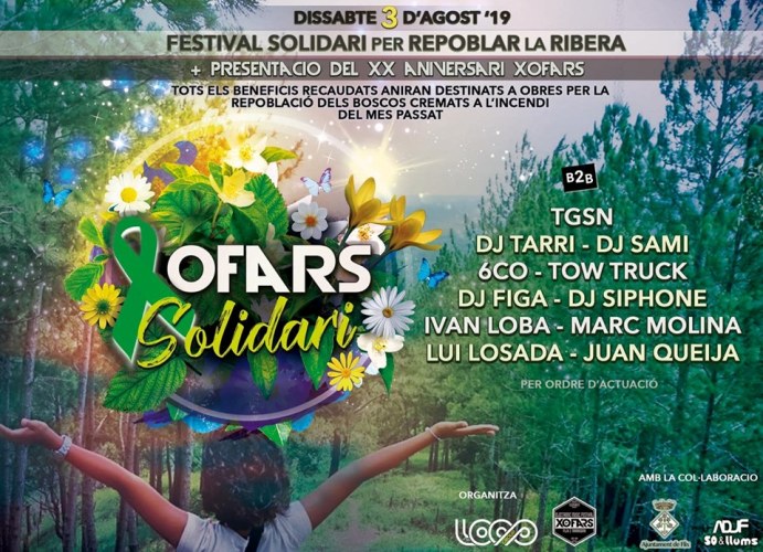 Festival solidari per repoblar la Ribera. Tots els diners que es recaptin d’entrades i beguda aniran destinats per ajudar en rebrotar la nostra terra.
