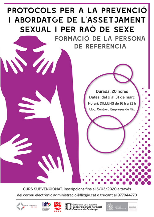 Durada: 20 hores Dates: del 9 al 31 de març Horari: DILLUNS de 16 h a 21 h Lloc: Centre d'Empreses de Flix Curs subvencionat. Inscripcions fins al 5 de març a tarvés del correu electrònic administracio@flixgie.cat o trucant al 977 044 770